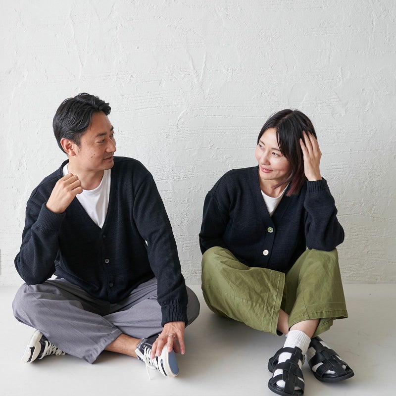 洗える強度コットンニット ベーシックカーディガン(ブラック)