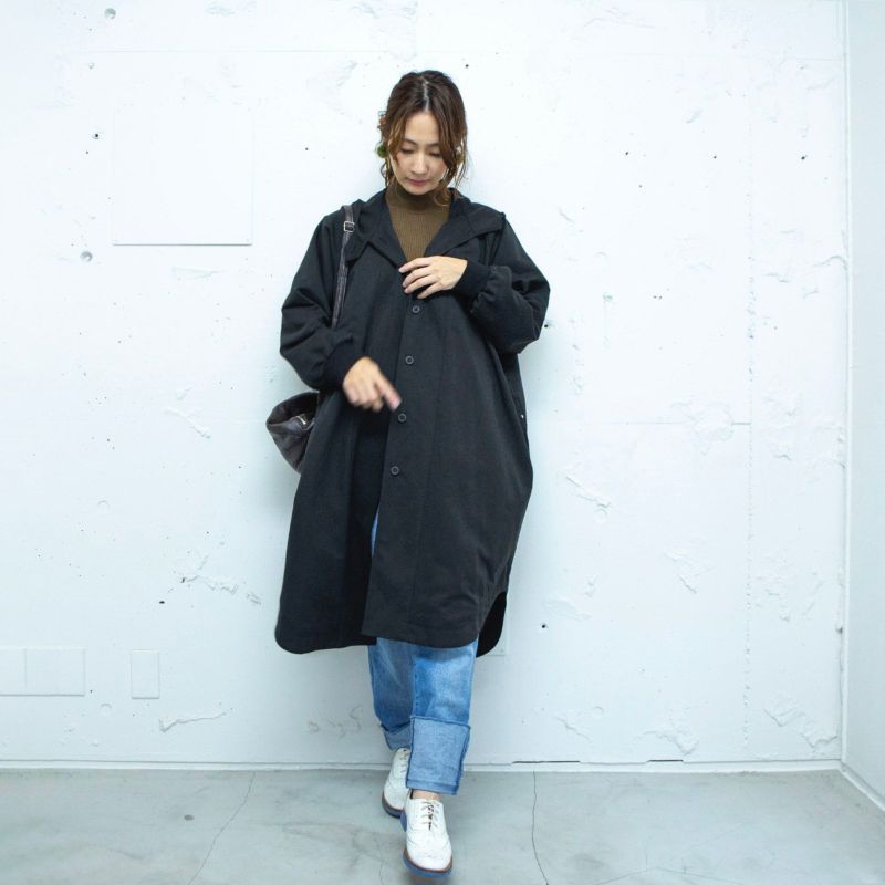 フードを開くと襟のようになり優しい雰囲気になります。