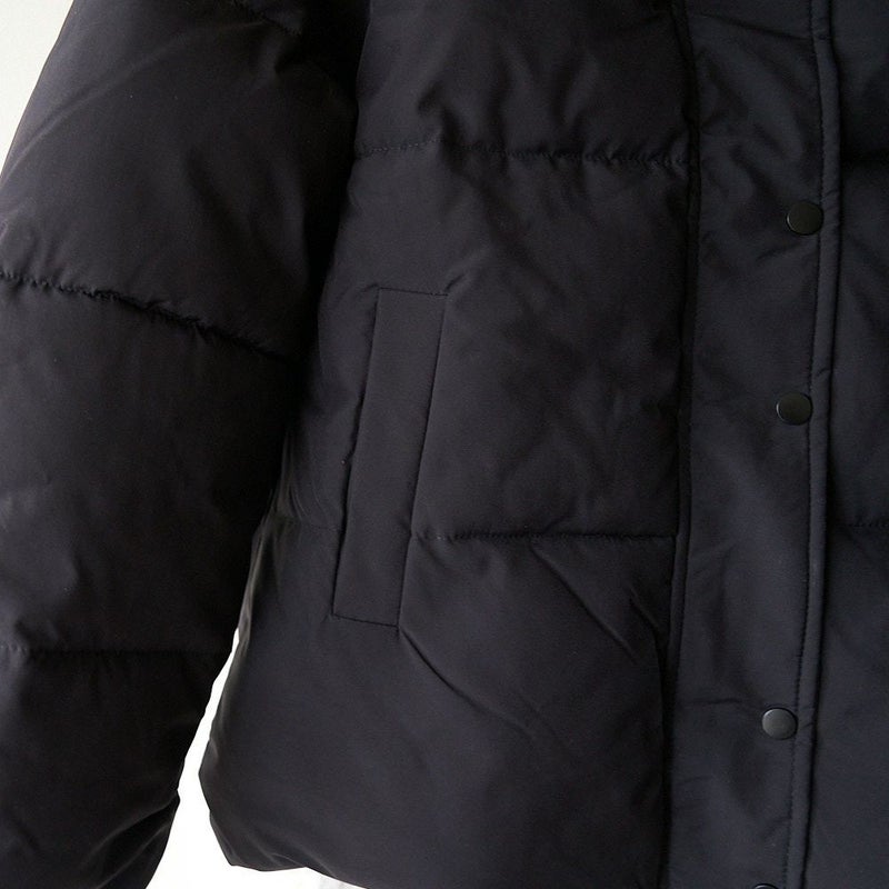 冷たい風をしっかりとブロックしながら、体温のぬくもりを内側に閉じ込めます。 中綿はふっくらとボリュームがありながら軽量で、長時間着ても肩がこらない着心地。 まるで毛布に包まれているような安心感があります。
