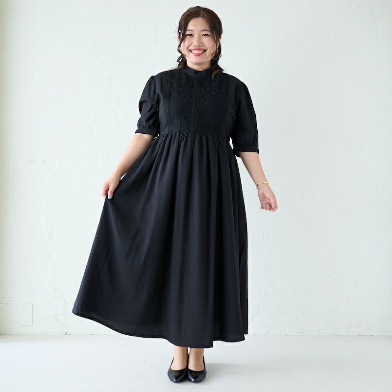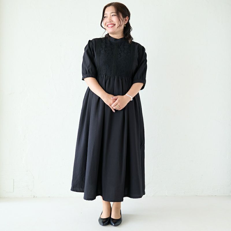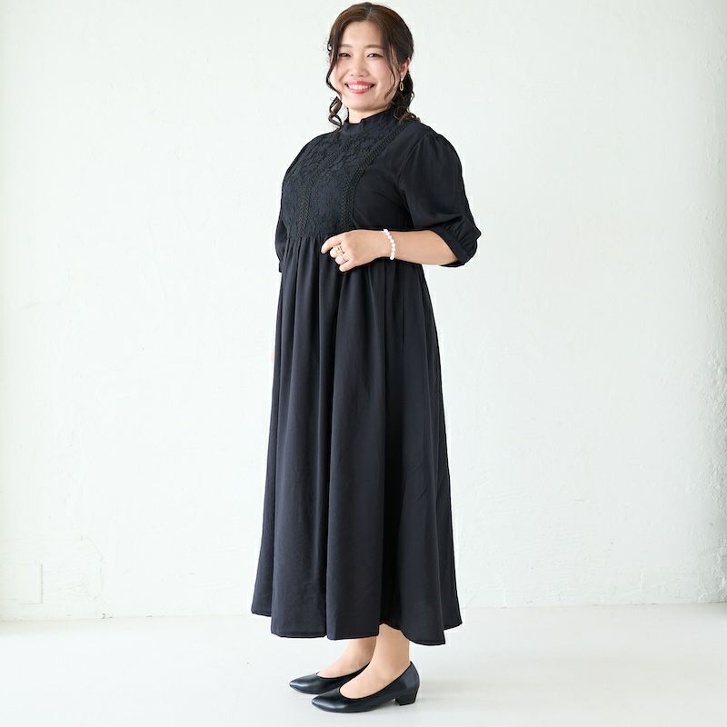 レースが可愛い半袖フォーマルワンピースドレス(ブラック)