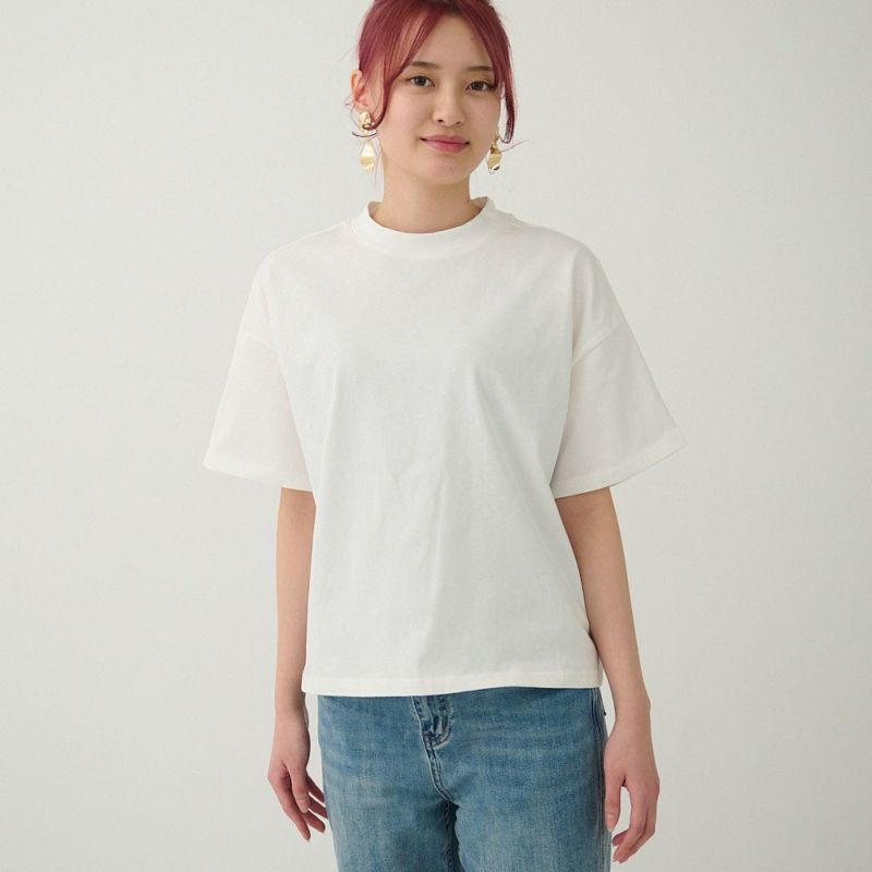お得な2枚セット シンプルきれいめモックネックTシャツ(2枚セット ホワイト&ライトブルー)