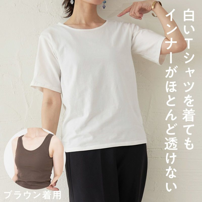 季節を通して、透けないタンクトップのインナーは必須。