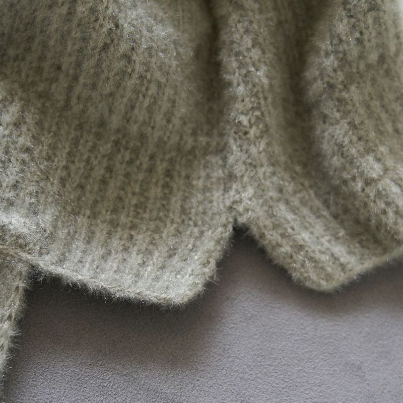 驚くほど軽く、長時間着ていても頭に負担がかかりにくいのが特徴。ニット素材にありがちな「毛玉問題」も気になりません。毛足はやわらかいのに型崩れしにくく、日常的に頼れる1枚です。
