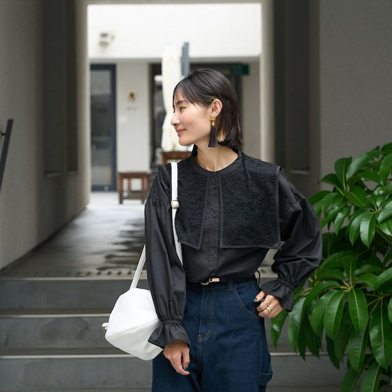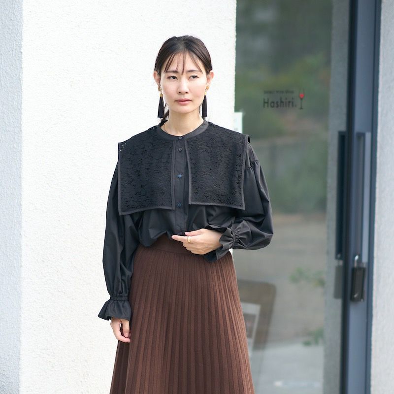 大人に似合うおすすめ大きい襟のデザインブラウス