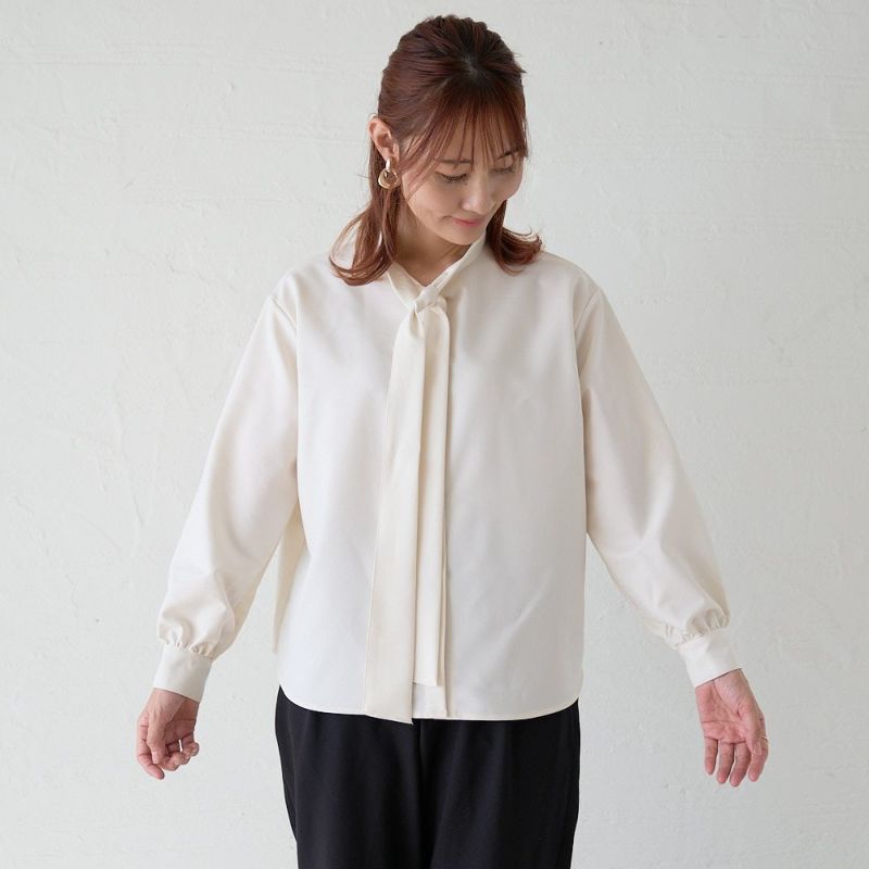 「忙しいけどきれいでいたい」「きちんと感も大事にしたい」そんな大人女子の気持ちを満たす一枚。オフィス、学校行事、ちょっとしたお出かけにも活躍する、万能ボウタイブラウスです。