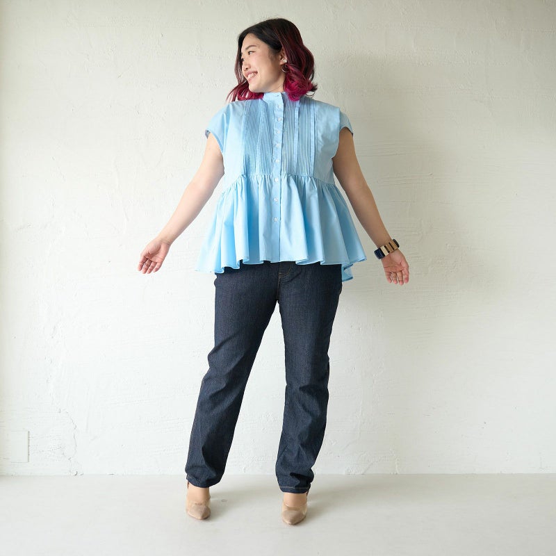 そんな悩ましいデニムコーデを可愛いトップスで解決します。