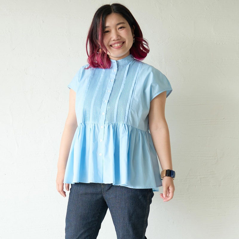 ゆとりのあるシルエットたっぷりボリュームのブラウスがトレンド感たっぷりなピンタックシャツブラウス。