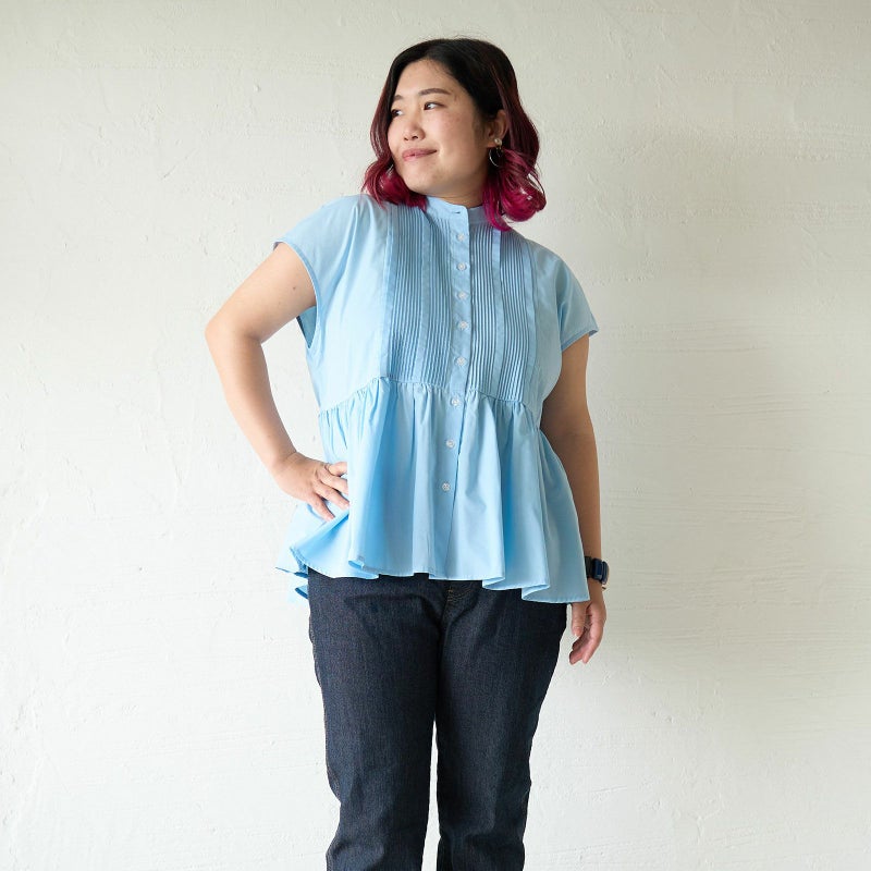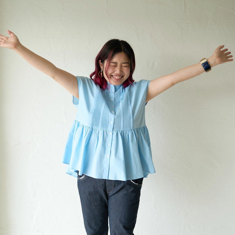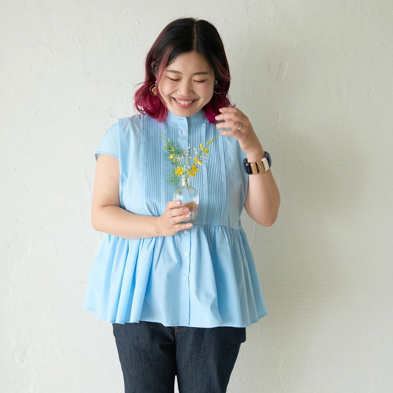 実は夏にとてもおすすめの素材の一つが綿ポリです!ハリがあると体のラインも拾いにくく、体型カバーにもひと役買ってくれます。