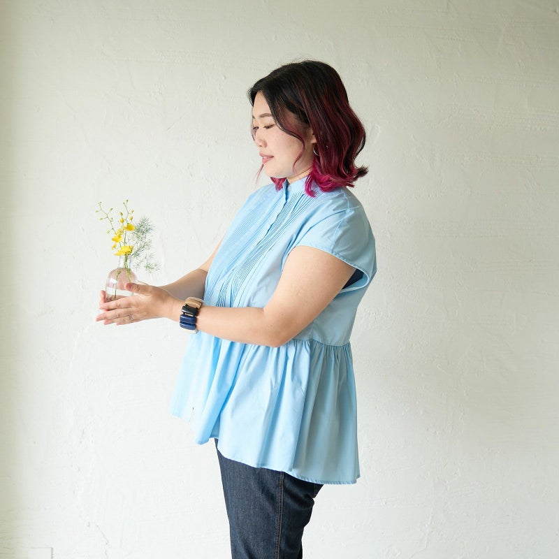 暑くてに袖を覆いたくない日、涼しげなビジュアルにしたい日にもぴったりです。