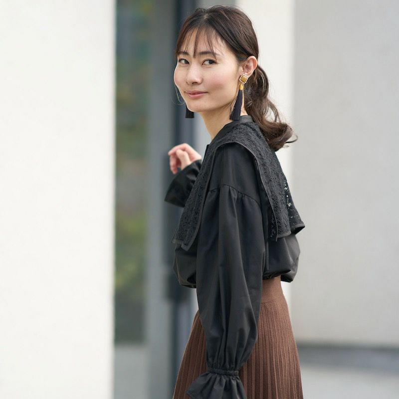 大人に似合うおすすめ大きい襟のデザインブラウス