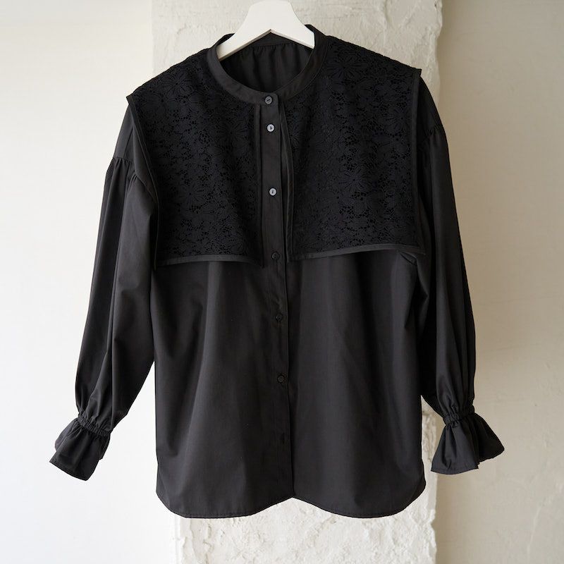 今季襟付きのブラウスはたくさん出ていますが中でもレースとドッキングが可愛いです。
