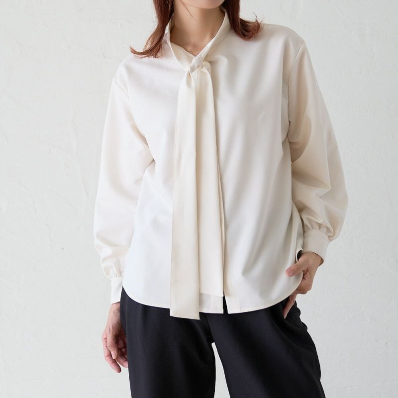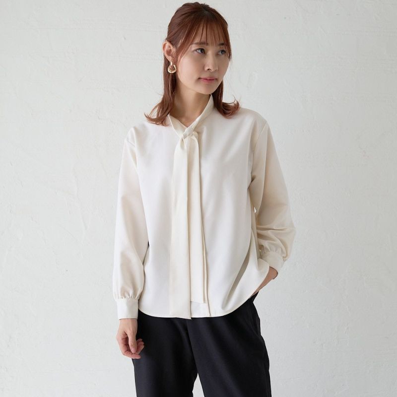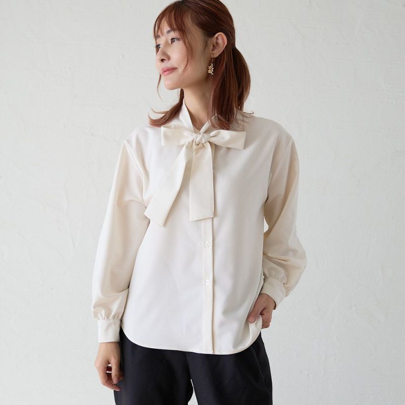 「忙しいけどきれいでいたい」「きちんと感も大事にしたい」そんな大人女子の気持ちを満たす一枚。オフィス、学校行事、ちょっとしたお出かけにも活躍する、万能ボウタイブラウスです。