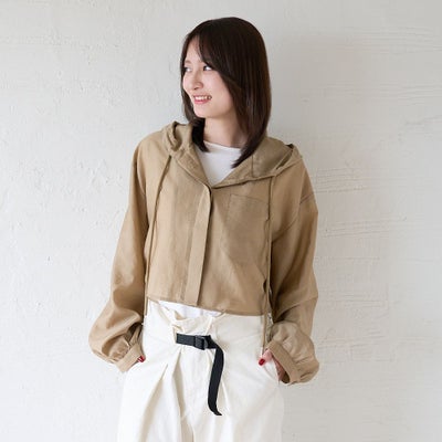 上品なカーキで、透け感があり、ふんわりと優しい素材感が気に入っています。 届いた時は少し丈が短すぎるかな?と感じましたが、実際に着てみたらパンツにもスカートにも合わせやすい絶妙なショート丈でした!大人可愛いスタイルを楽しめるパーカーです。
