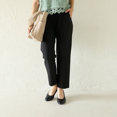 158センチ、普通より少し細身、おそらく骨格ウェーブで、太モモとお尻の境界がないよねと夫と娘に言われている、まさに日本人体型アラフォーです。なので、今までは専らロングスカート派だったのですが、骨格ウェーブさんはタックパンツ似合うというコラムを読んで、数年ぶりにパンツに挑戦してみました。 全然、苦しくなくて、しかも、着痩せ効果がものすごいです。着こなしの幅が広がり嬉しいです。一緒に購入したニットと合わせています。