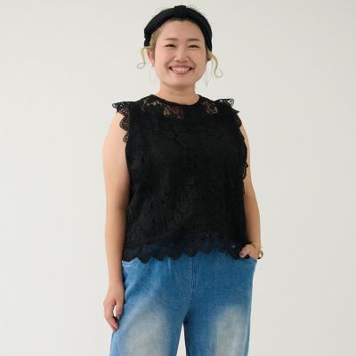 プラスサイズ フラワーレースブラウス(ブラック) のレビュー