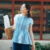 本日届きました。思った通り可愛くてステキです。155センチ56キロですが、ゆったり着れました。最初は、白を注文しようと思ってたんですが、白いブラウスは他にも持ってるし…と思い、ブルーに。すごくキレイな水色で、とっても気に入りました。 -