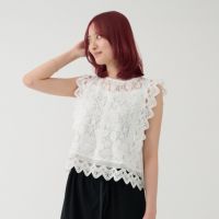 スーツのインナーとしても優秀です! 上品なレースで高見えするので、お気に入りです。 袖なしのため、腕回りに干渉せず、デスクワークも◎ オフィスではジャケットを脱いで、カーディガンを羽織っても綺麗です。 -