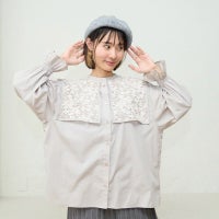 黒と一緒に購入。黒はレース部分も黒ですが、グレーはレースが白なのでレースの存在感が強いです。 華やかで気に入ってますが、身幅が広く袖が短いデザインなので、手を挙げると袖が引っ張られる感じは気になります。あまり動かないデスクワークの日なら良さそう。 -