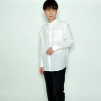 メンズ スタンドカラーオーバーチュニックシャツ(ホワイト)