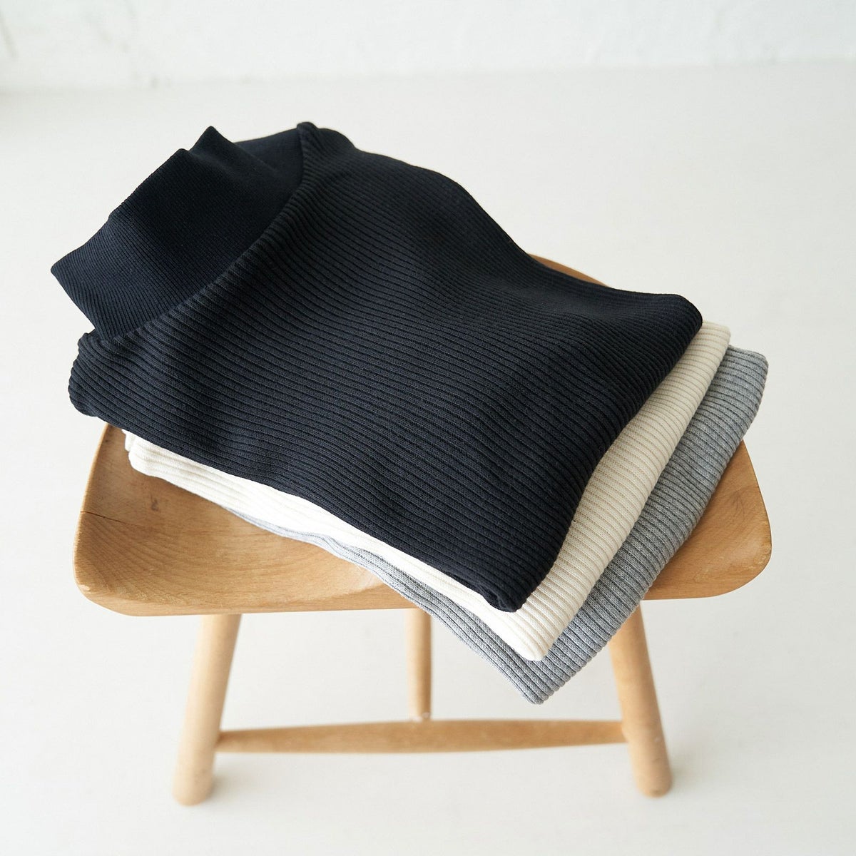 他の画像を見る チクチクしないコットンニット 【3色セット】テレコニット ハイネックトップス(ホワイト&グレー&ブラック) 送料無料 お得なセット 20%OFF 定価 ¥ 14,940 のところ ¥ 12,000 税込 お気に入り登録