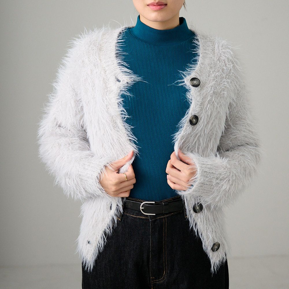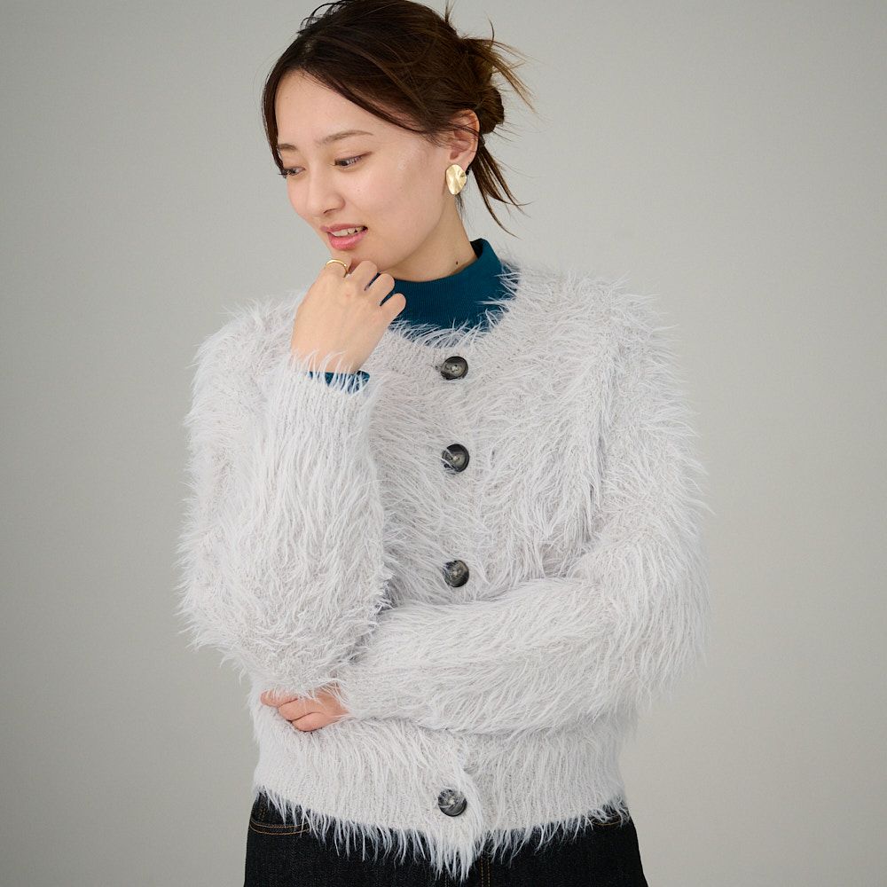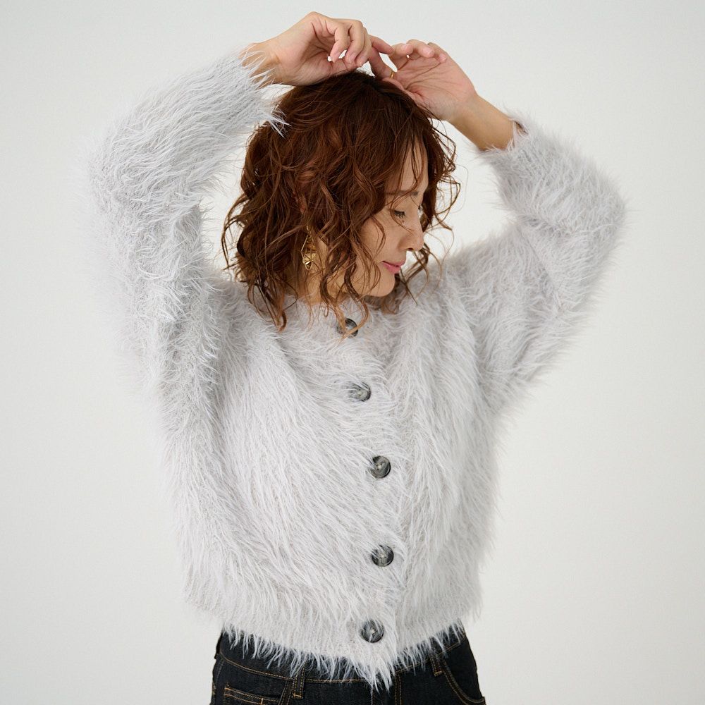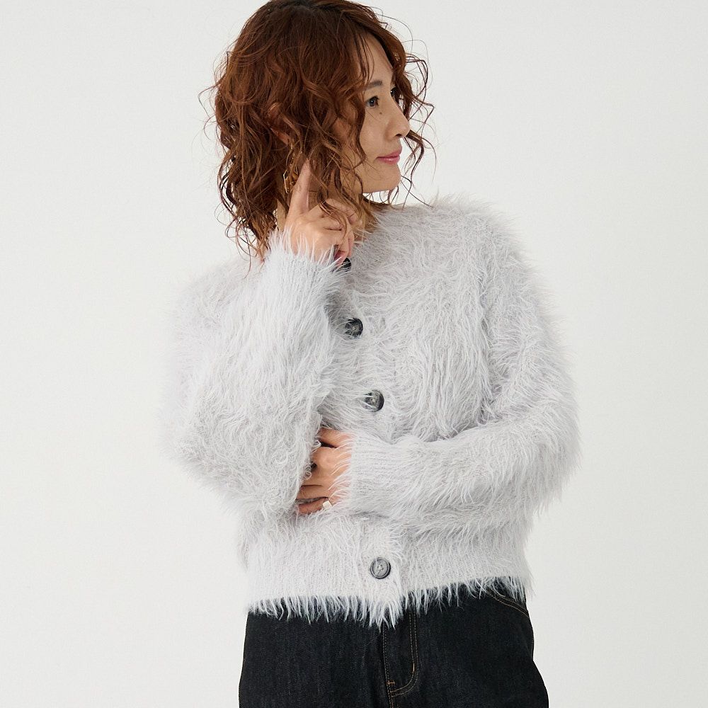 シャギーニットカーディガン (ライトグレー)