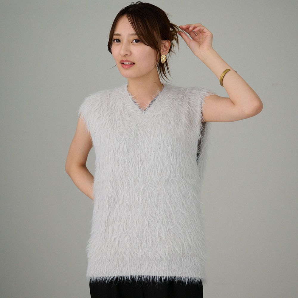 シャギーニットベスト(ライトグレー)