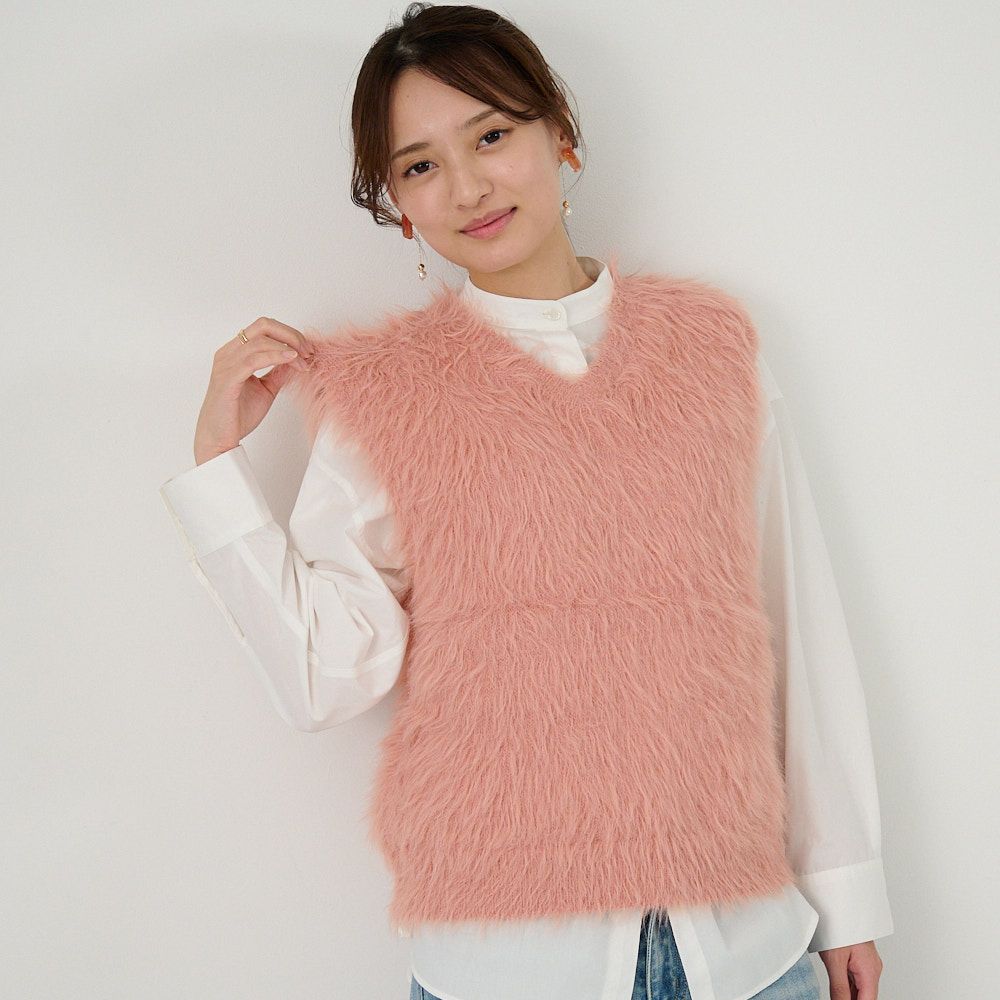 シャギーニットベスト(くすみピンク)