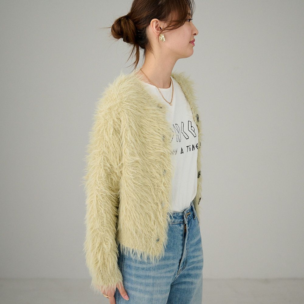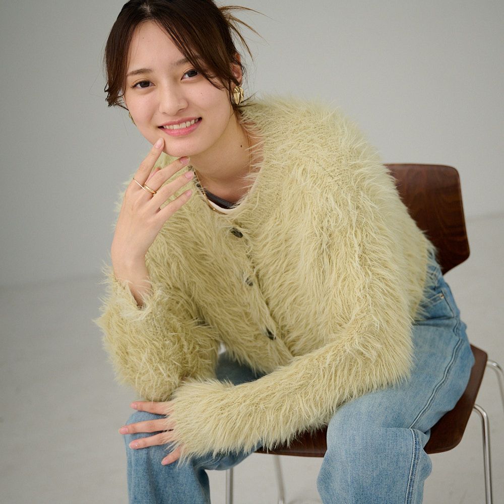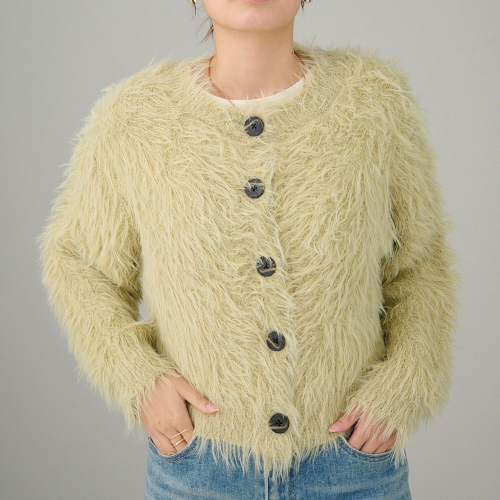 シャギーニットカーディガン(若草色)