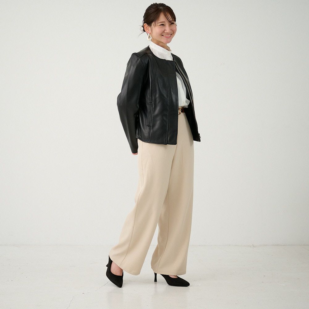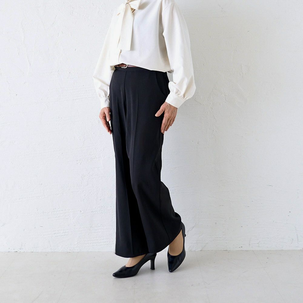 【パンツ単品】ストレッチワイドパンツ(ブラック)