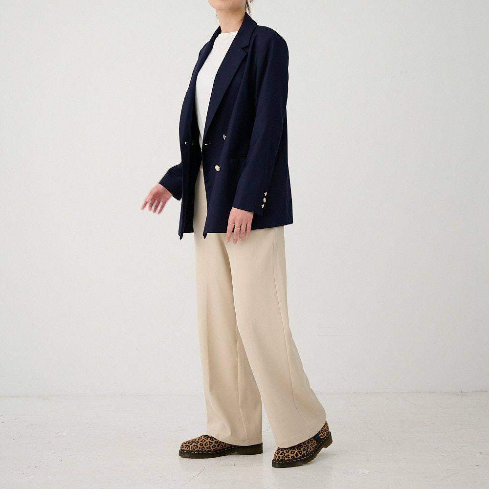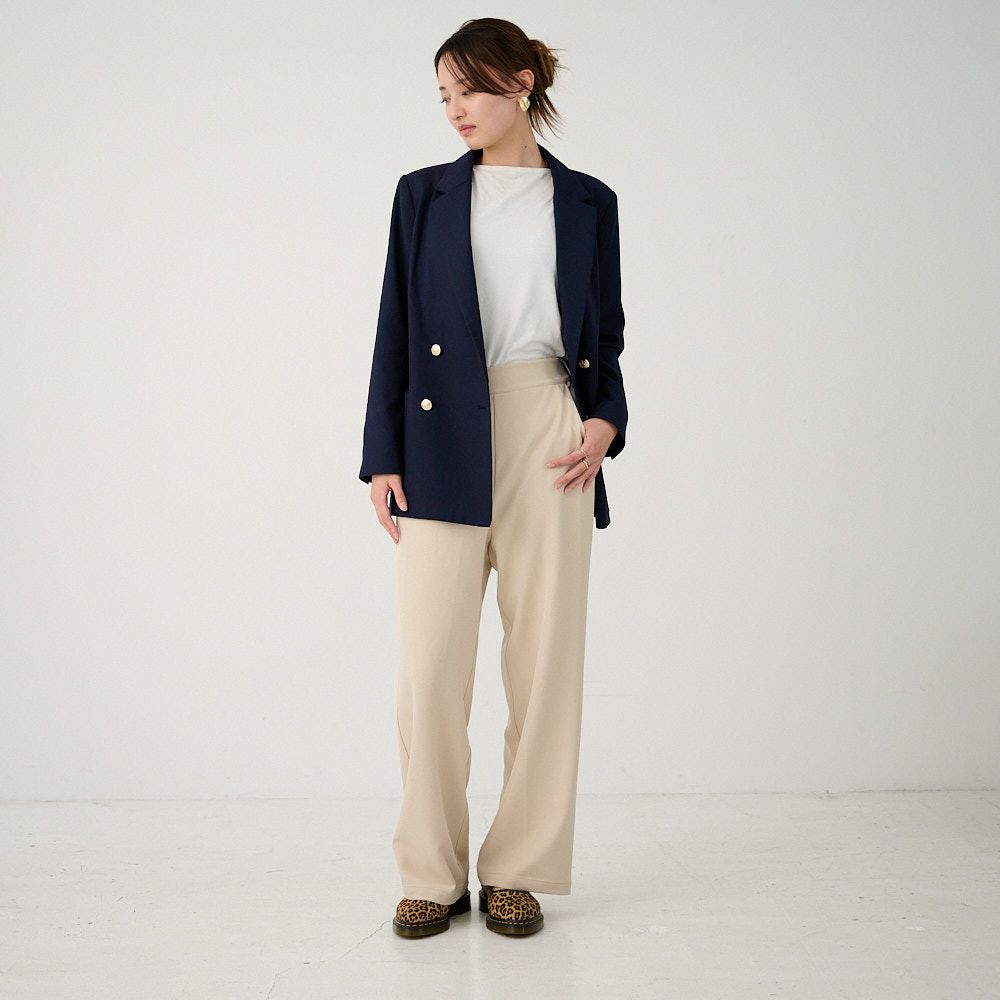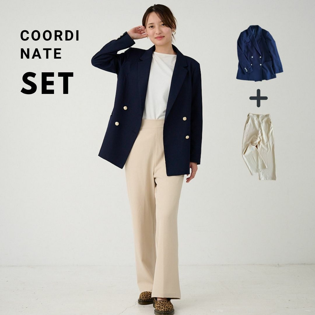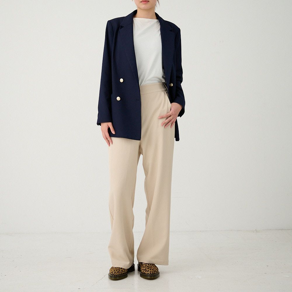 オフィスコーデセット 紺ジャケット&ワイドパンツベージュ