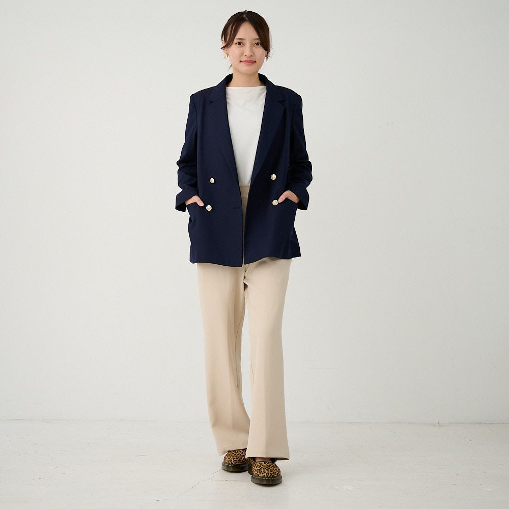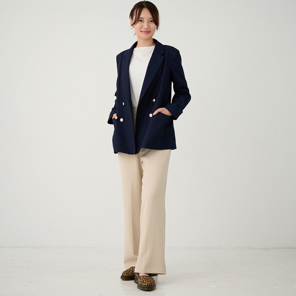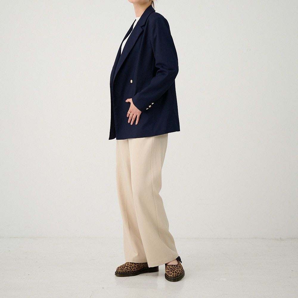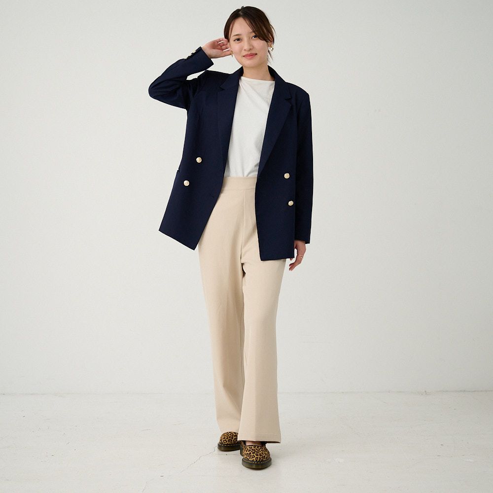 オフィスコーデセット 紺ジャケット&ワイドパンツベージュ