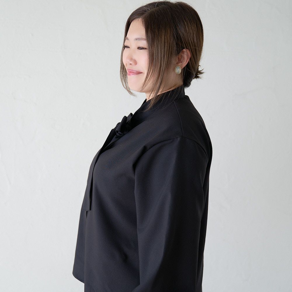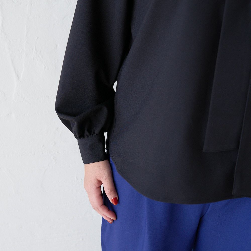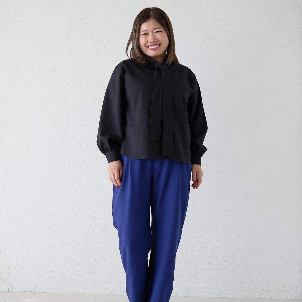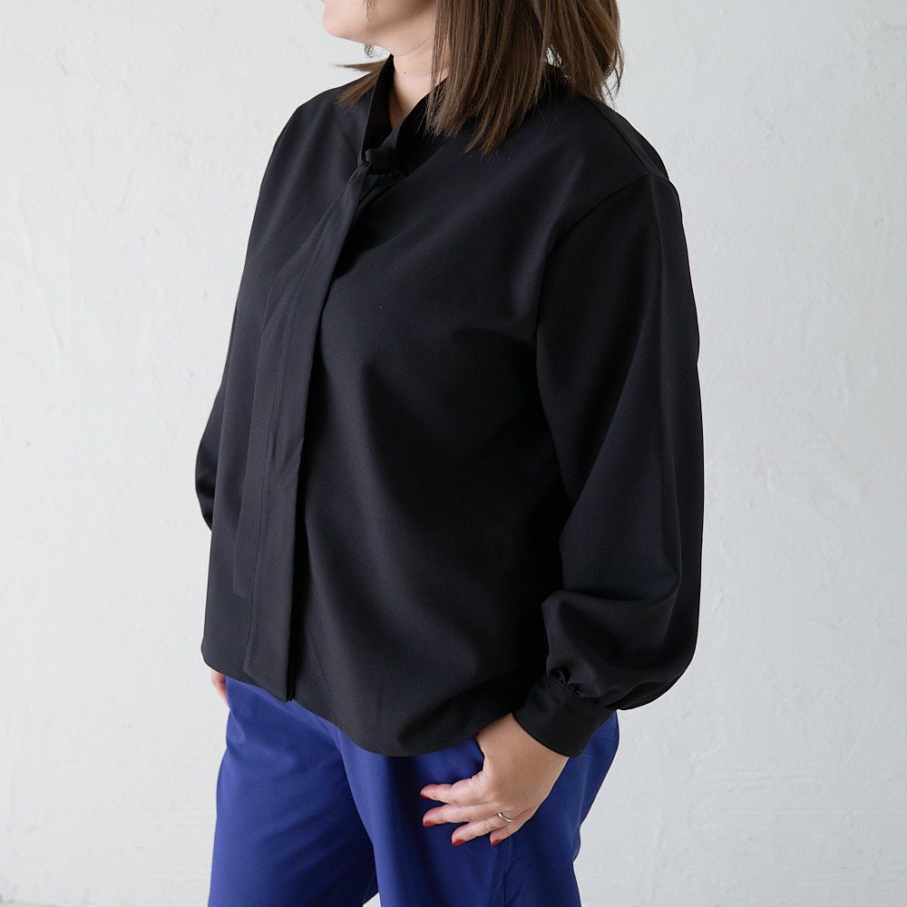大きいサイズ とろみ素材ボウタイ長袖ブラウス(ブラック)